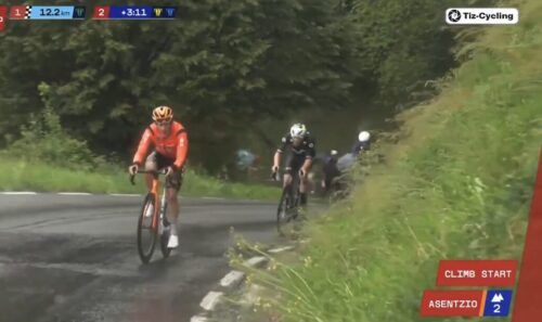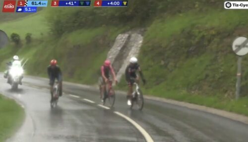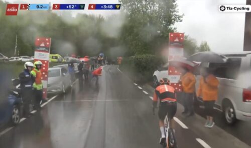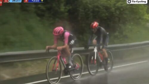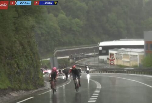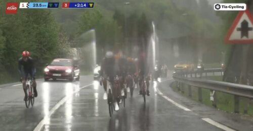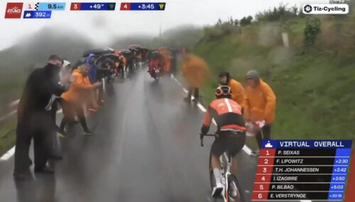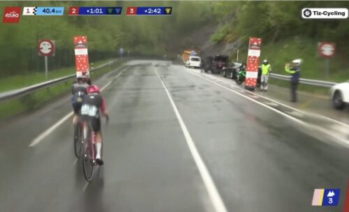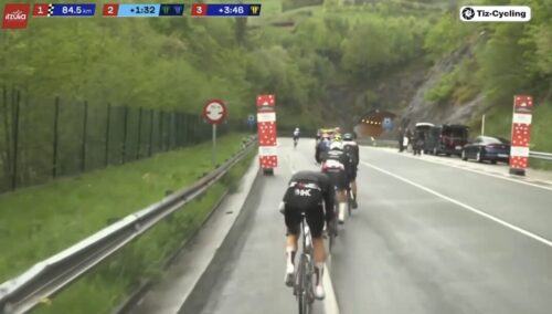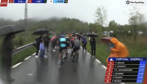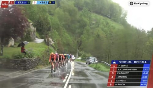 33人が集団から抜け出している。もっともタイムが良いのはUno-X Mobilityのトビアスハラン・ヨハンネンセンで5分39秒差なので問題ない。バーチャルでは3位になっている。