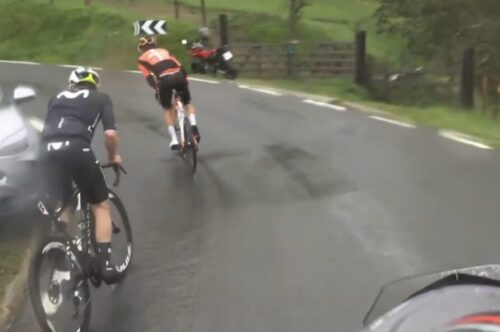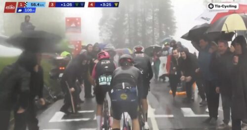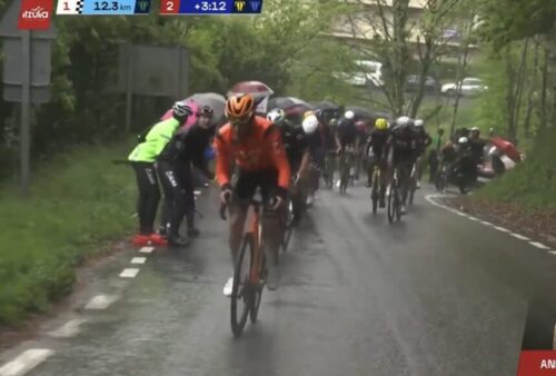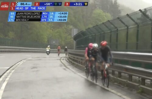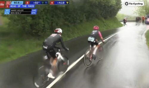 残り23.5kmでベン・ヒーリーとマティアス・スケルモースイェンセンは捕まった。ポール・セイシャスとのタイム差は2分14秒差。