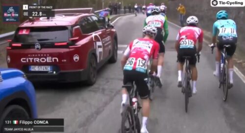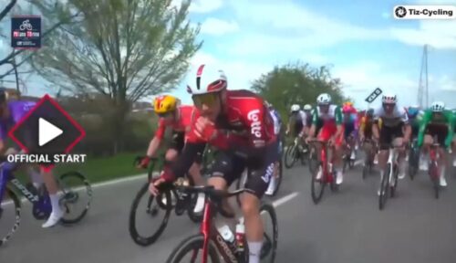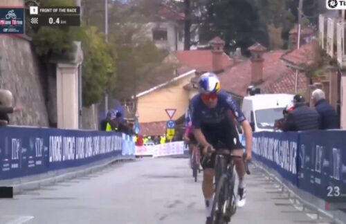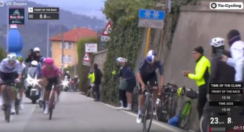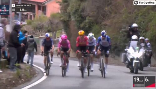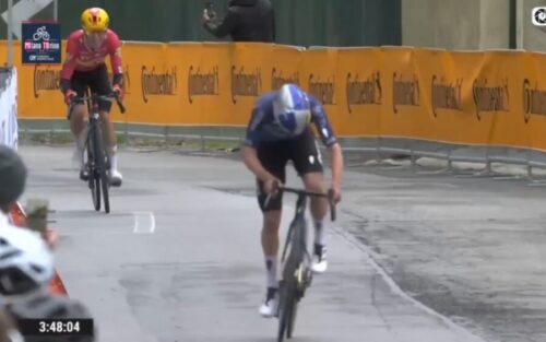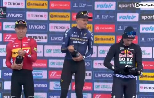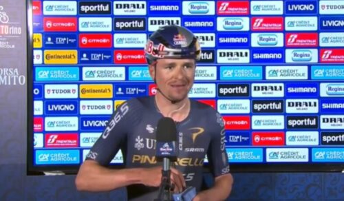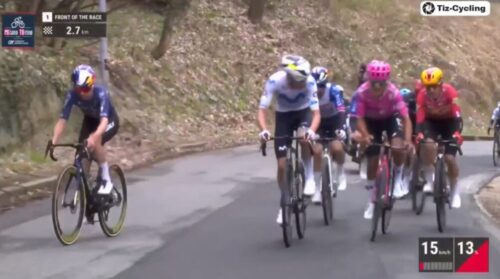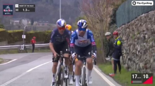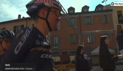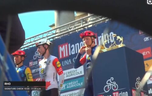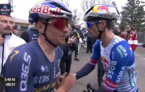 トム・ピドコックはプリモッシュ・ログリッチと握手。プリモッシュ・ログリッチは休むと言っていたけど、今回のミラノ~トリノも急遽出場。これについては別記事で。