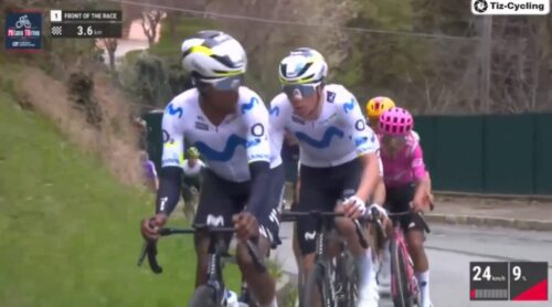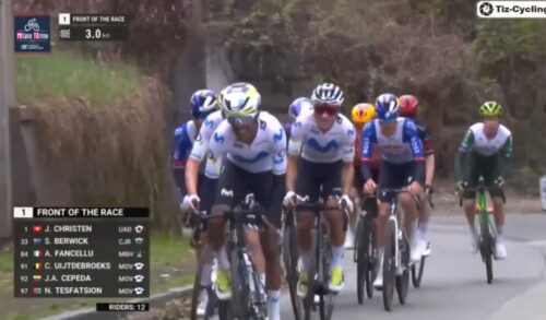 Movistar Teamのテスファチオン・ナトネルがシアン・エイテブルックスを引いている。
