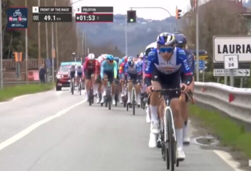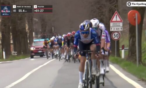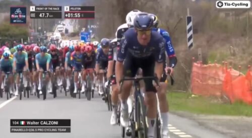 残り47.7km。Pinarello Q36.5 Pro Cycling Teamのウォルター・カルゾーニも集団牽引。