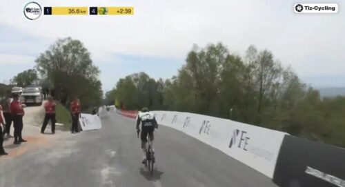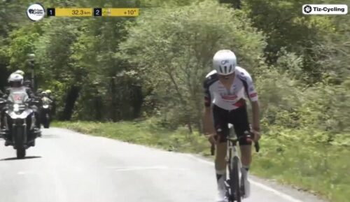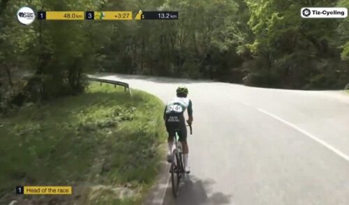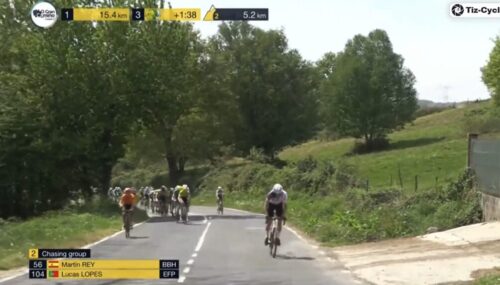 残り2km。アダム・イェーツは、あと3秒稼がないとリーダーとならない。
