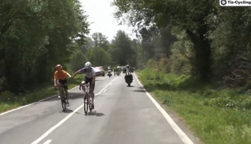 NSN Cycling Teamのジョージ・ベネットが抜け出す。Team Visma | Lease a Bikeのアントン・シファーがチェックに。