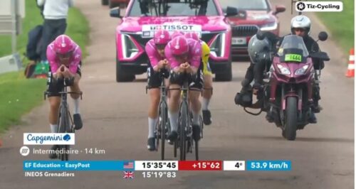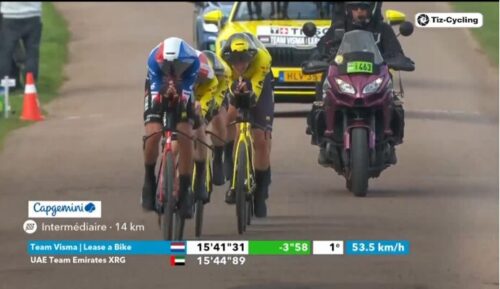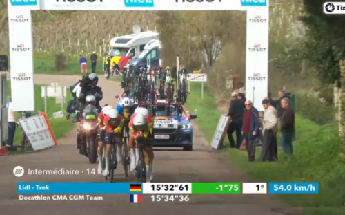 中間計測15分19秒でLidl-Trekを12秒も上回って暫定トップに。