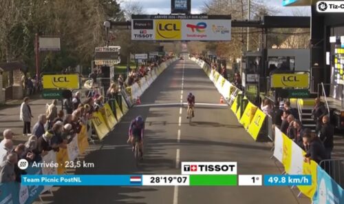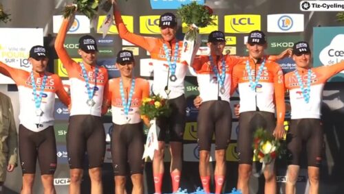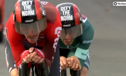 これにより、優勝は INEOS Grenadiersに。ただ、総合はLidl-Trekのフアン・アユソーが2秒差でトップに。ケヴィン・ヴォークリンは総合2位。
