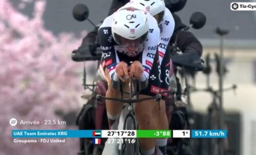 UAE Team Emirates – XRGは27分17秒で暫定トップに。
