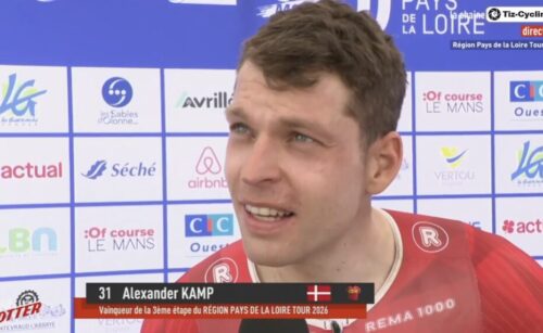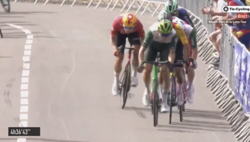 この後、集団もなだれ込んできた。イーサン・バーノンは遅れたので、Uno-X Mobilityののアレクサンダー・カンプが総合トップに。