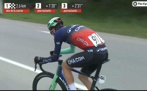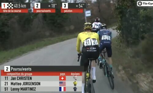 2位は一度切れたUAE Team Emirates – XRGのヤン・クリステン、3位Bahrain Victoriousのレニー・マルティネス、4位Team Visma | Lease a Bikeのマッテオ・ヨルゲルソン。
