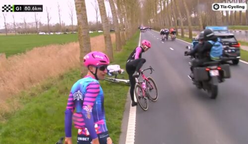 あれは自分のミスだった。少し後ろに下がりすぎていたが、集団が崩れるとは思っていなかった。それは落車が原因だった。エルマー・ラインダースも失ってしまった。彼は膝を痛めていた。しかし、チームメイトたちはうまく対応し、すぐに私を集団に戻してくれた。