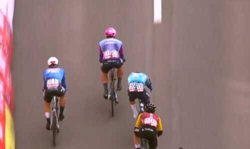 残り500m。XDS Astana Teamのスカブ・グルマイが先頭に。
