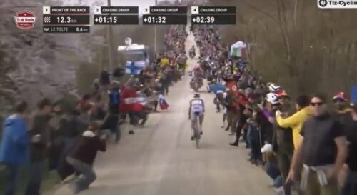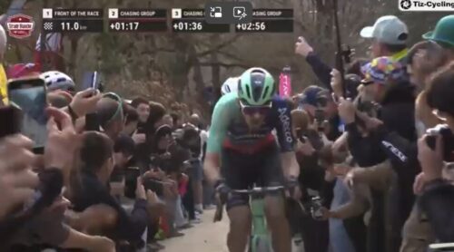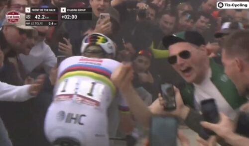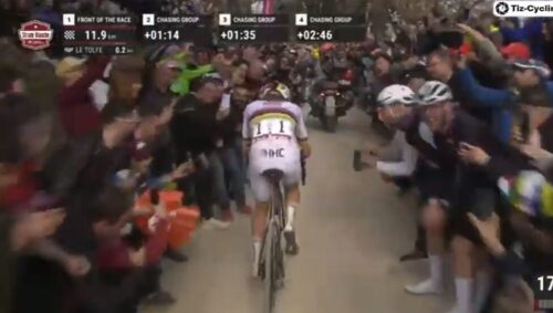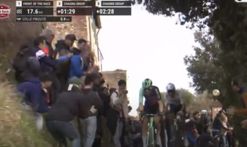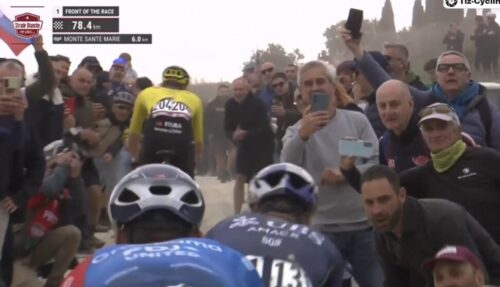 お待ちかねのファンの前をタデイ・ポガチャルが単独で走る。