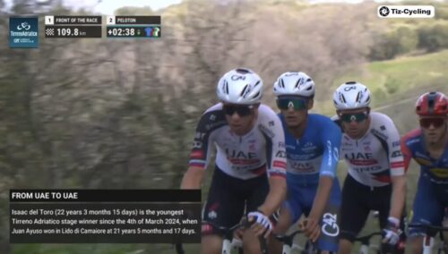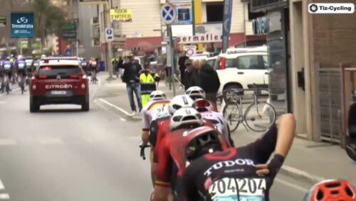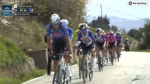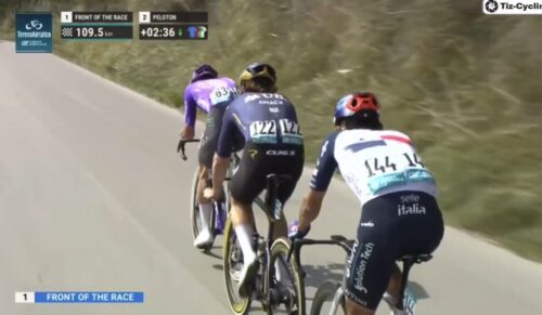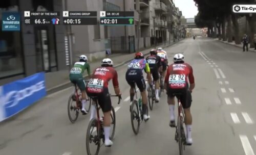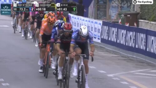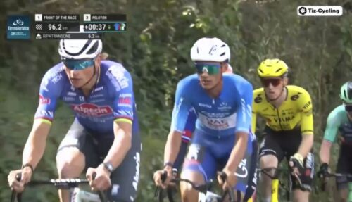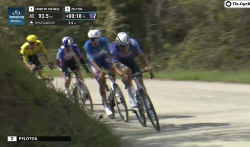 マチューの引きで先頭を捕まえてしまいそう。アイザック・デルトロ、プリモッシュ・ログリッチ、マッテオ・ヨルゲルソンと続く。