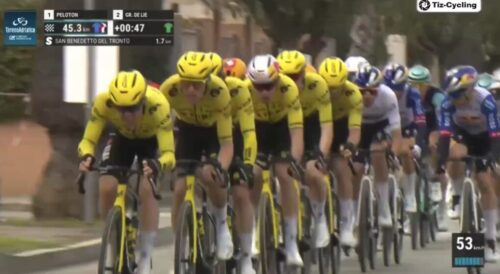 残り45.3km。Team Visma | Lease a Bikeが引くパターン。