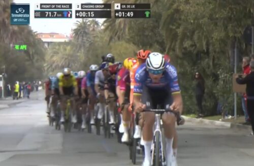 おっと、マチュー・ファンデルプールが引いて集団を粉砕。