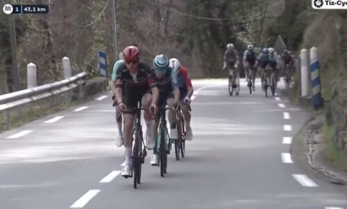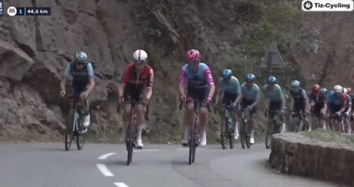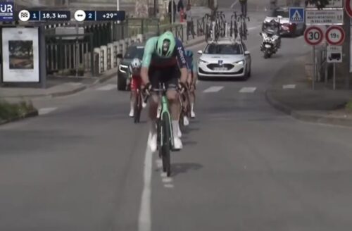 ワンデーレースとなったけれど、コースは海岸線から離れて内陸部を待ってメール~ビオにもどってくる。最後のゴールも少し上っているので残ったライダーによる決戦となりそう。