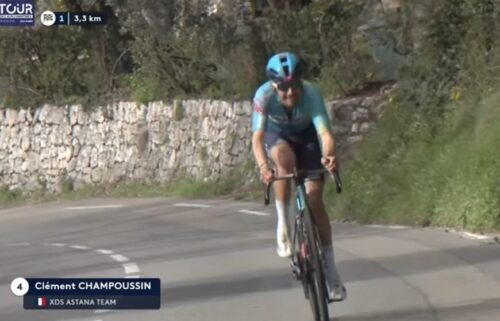 追走からXDS Astana Teamのクレモン・シャンプッサンが追ってくる。