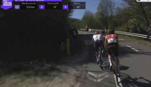集団はGroupama – FDJ Unitedが引く。タイム差は1分41秒に。