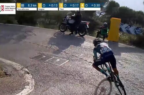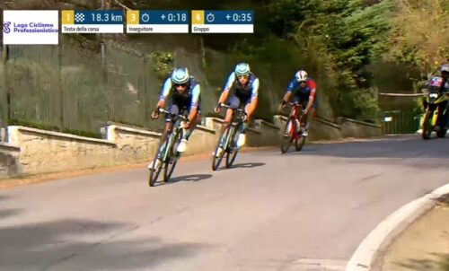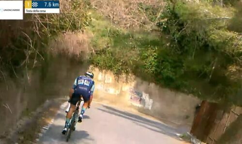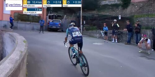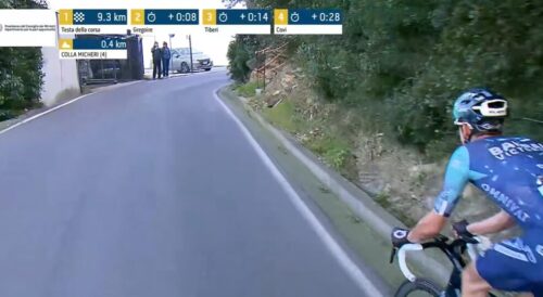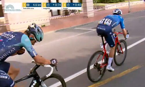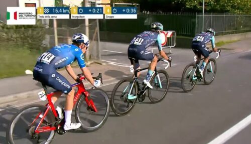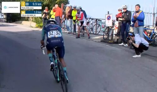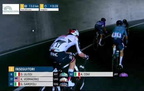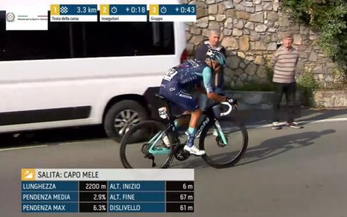 残り4.6kmに。アントニオ・ティベッリはチームと無線で確認中。