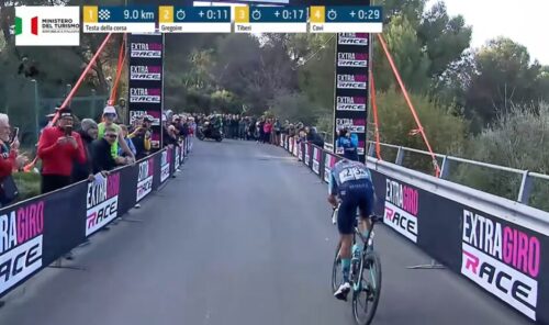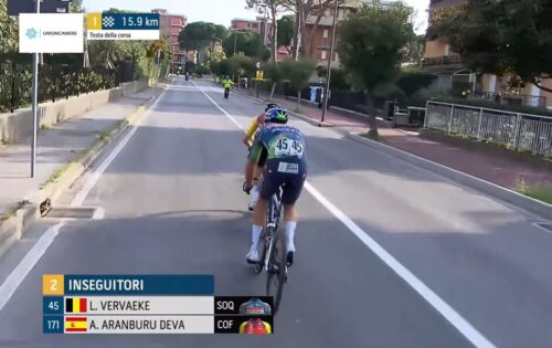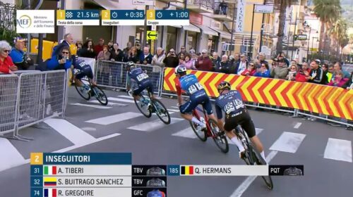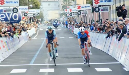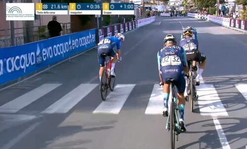 この差だ。物凄いロングスプリントしたけど、クライマーのアントニオ・ティベッリではパンチャー気質のロマン・グレゴワールにはかなわなかったか。しかし、今年のアントニオ・ティベッリは好調だ。