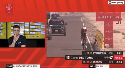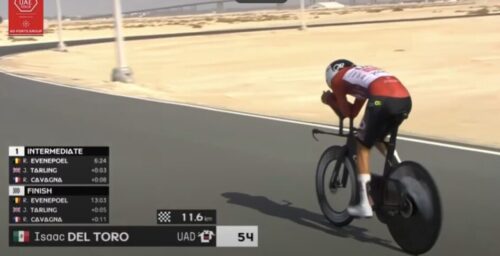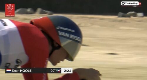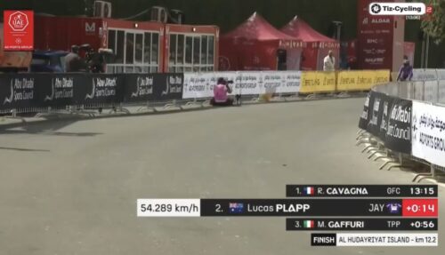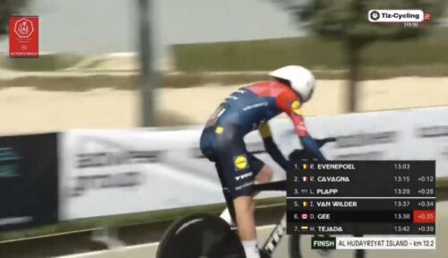 レムコ・エヴェネプールは、レミ・カヴァニャを12秒上回った。av56.1km/h。13分3秒で暫定1位。これは長くホットシートに座りそう。