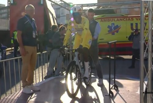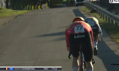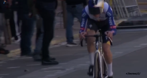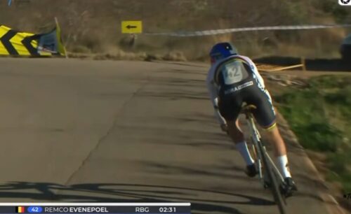 レムコ・エヴェネプールは、20分12秒で暫定トップタイム更新。残り7人いるけど、全力で走るライダーはいない。