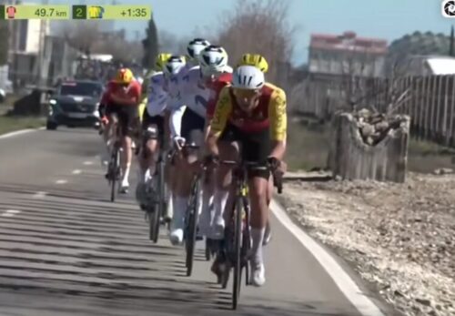 第2ステージではまさかの逃げ切り。Team Visma | Lease a Bikeが全開で追うかと思われたけれど、ヴィクトール・カンペナールツが引き終わると、あとは若手主体。
