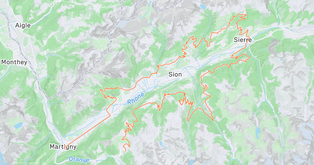 Verbierの町をスタート。赤いラインが最長の220キロのコース。