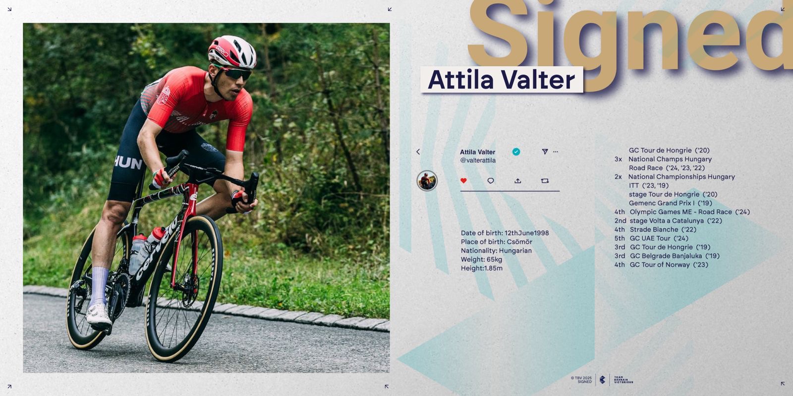 2022年にGroupama – FDJから移籍してきたアッティラ・ヴァルテルがTeam Visma | Lease a Bikeから移籍となる。