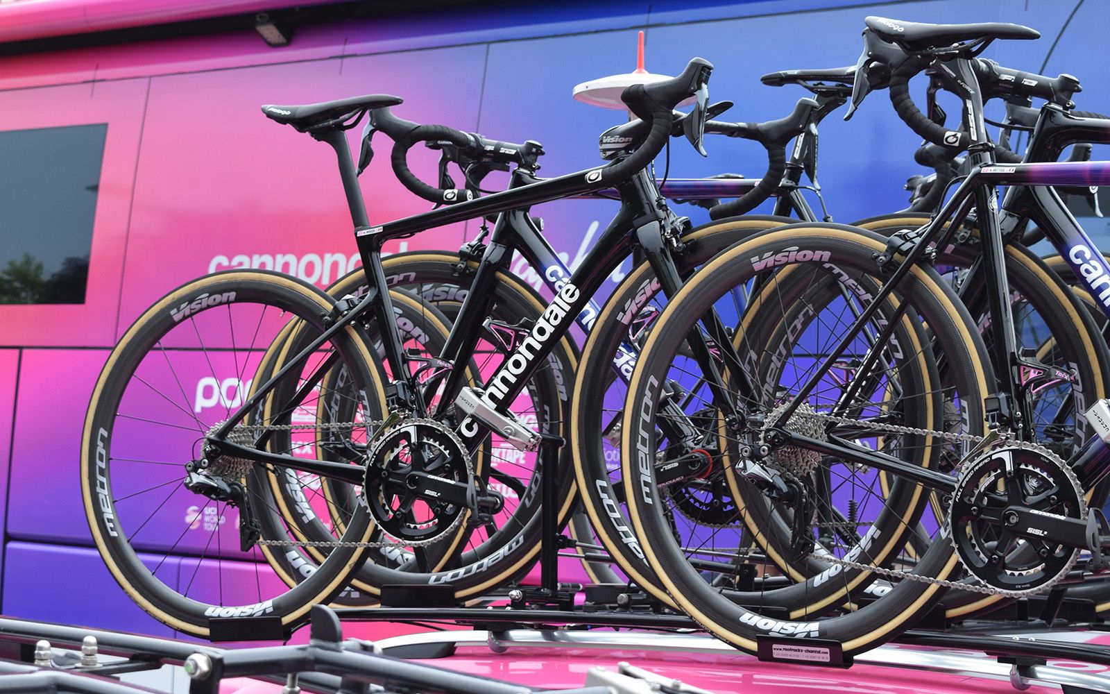 マイケル・ウッズとティージェイ・ヴァンガーデレンのレースバイクの両方にトップチューブにSuperSix EVOのデカールが貼られている。