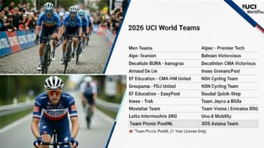 UCI(国際自転車競技連合)は、2026年から始まる3年間の新たなライセンスサイクルに向けた審査結果を発表。男子18チーム、女子14チームにワールドツアーライセンスが付与されたが、一部のチームには条件付きの承認が下されている。それはTeam...