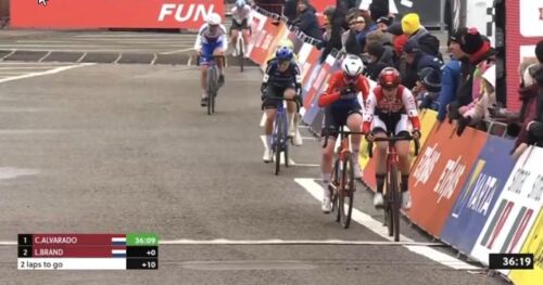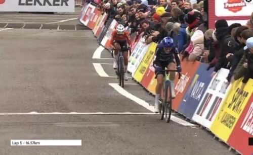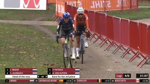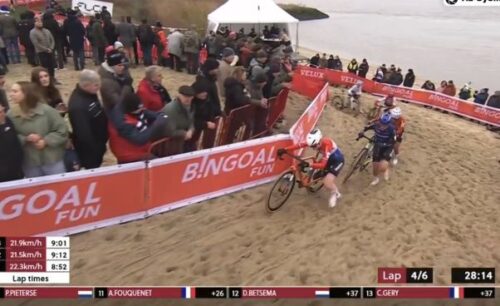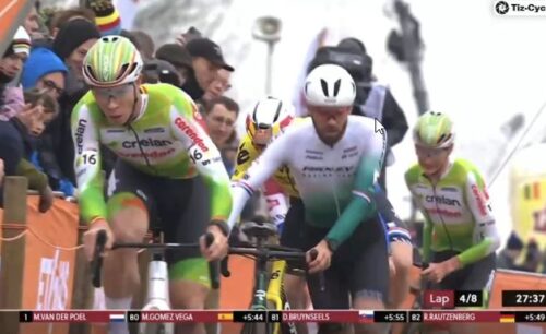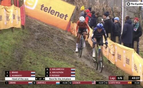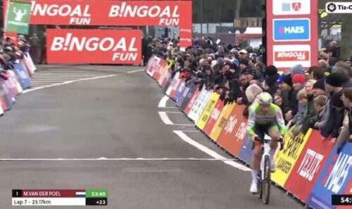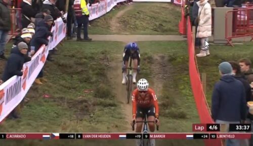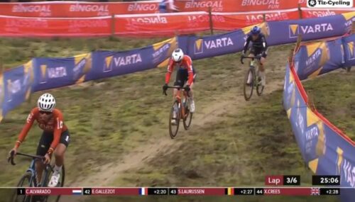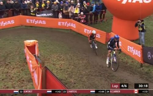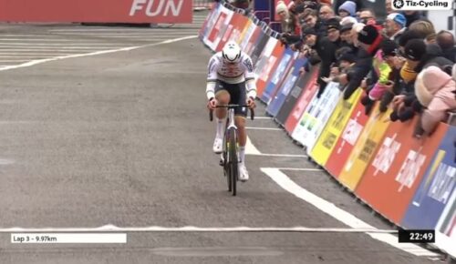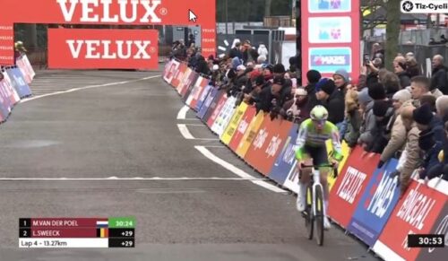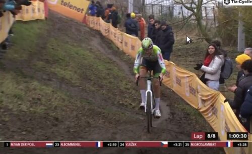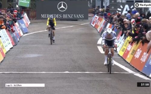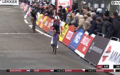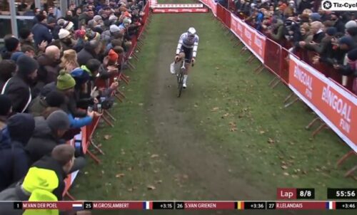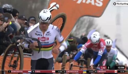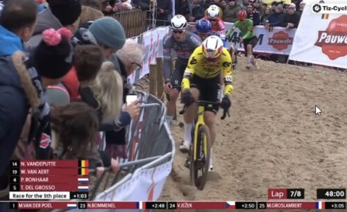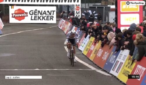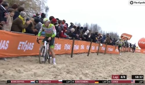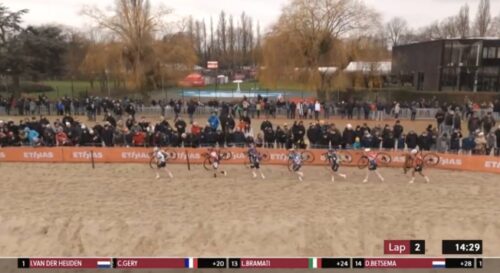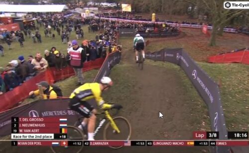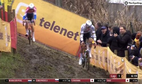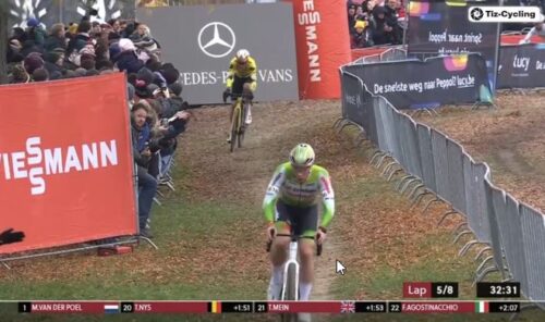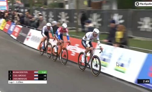 あっという間にマチュー・ファンデルプールがトップに。マチュー・ファンデルプールの後ろはティボール・デル・グロッソ。ヨリス・ニューウェンハイスと続く。