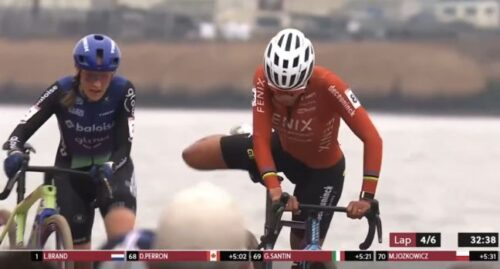 あ~、ルシンダ・ブランドが降りずに上った登りでセイリン・アラバラードが押してしまった。