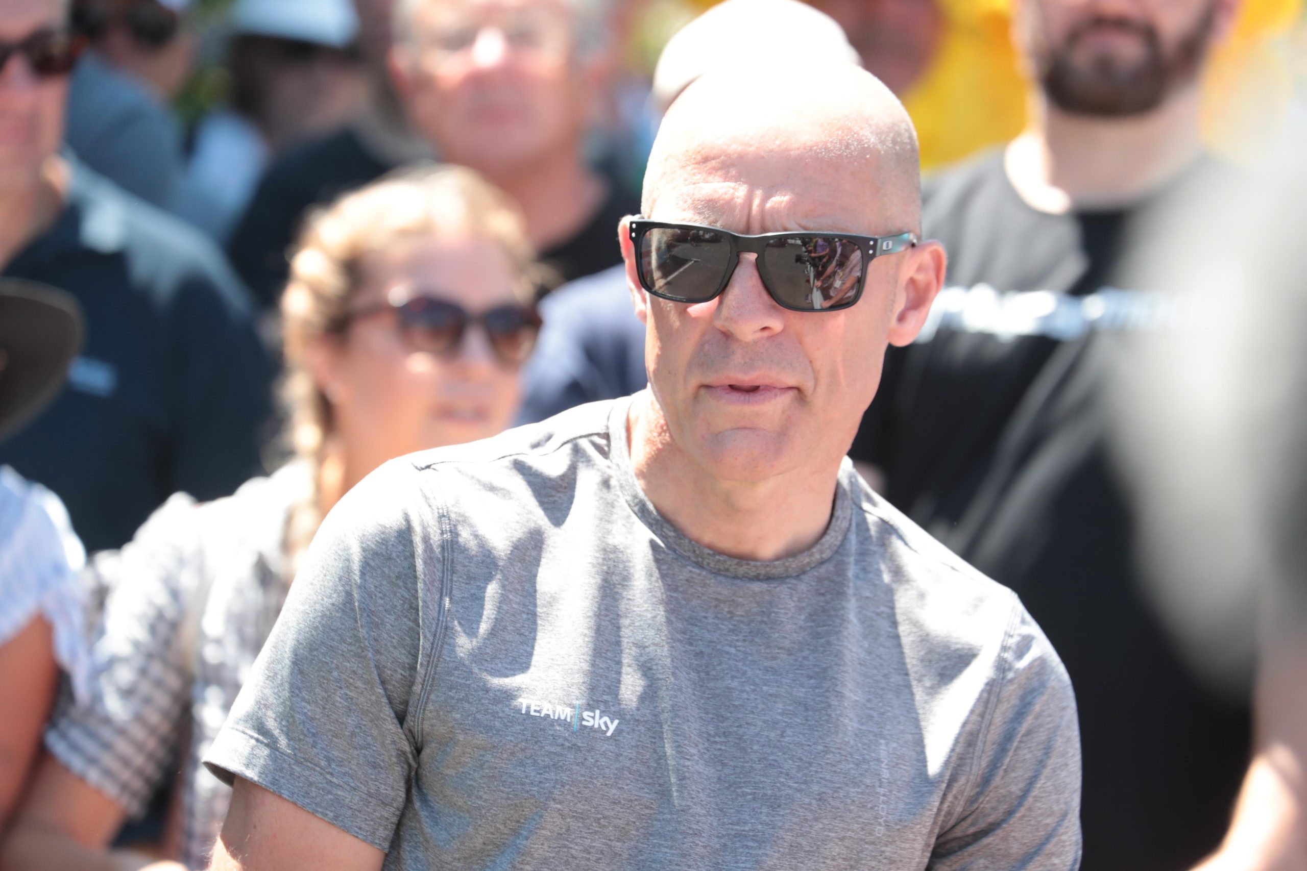 チームスカイのボスは、土曜日にチームスカイのメンバーのディエゴローザやゲラント・トーマスのレースを観戦するためにレース会場にいました。