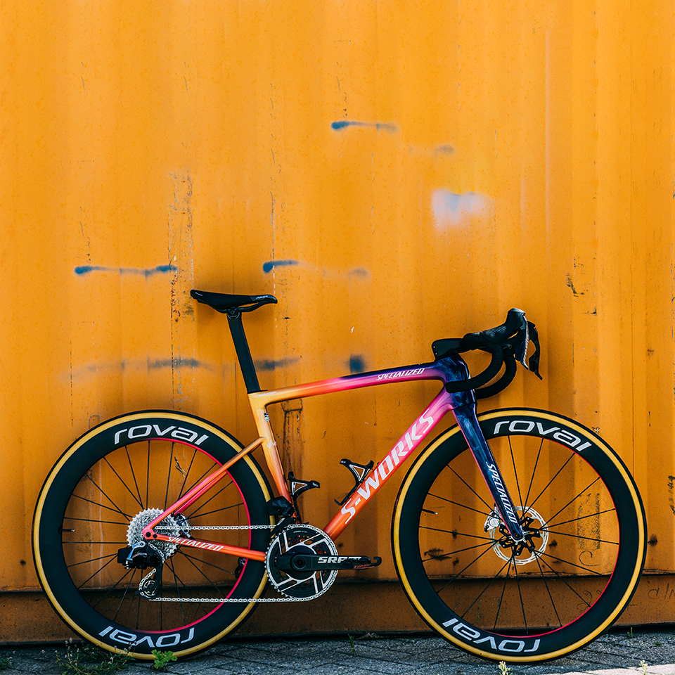 カスタムペイントは、SD Worx–Protime限定の「Dream State」ペイント。チームカラーよりも、かなり鮮やか。