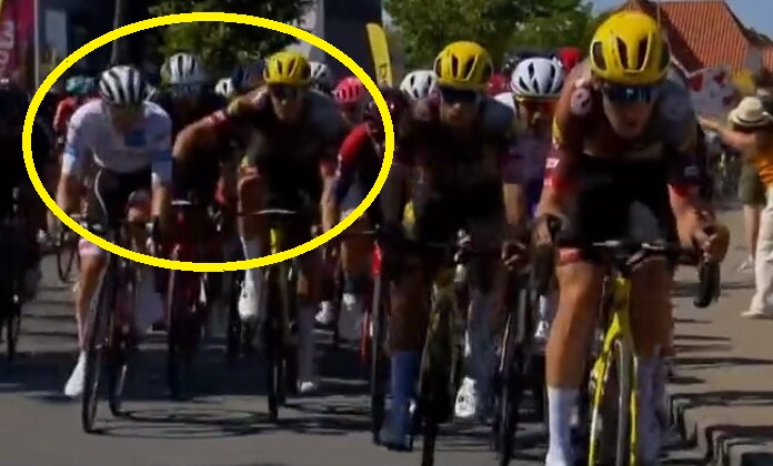 こちらは別シーンだけど、Jumbo-Vismaのクリストフ・ラポルトがタデイ・ポガチャルを2回ノックしてる。