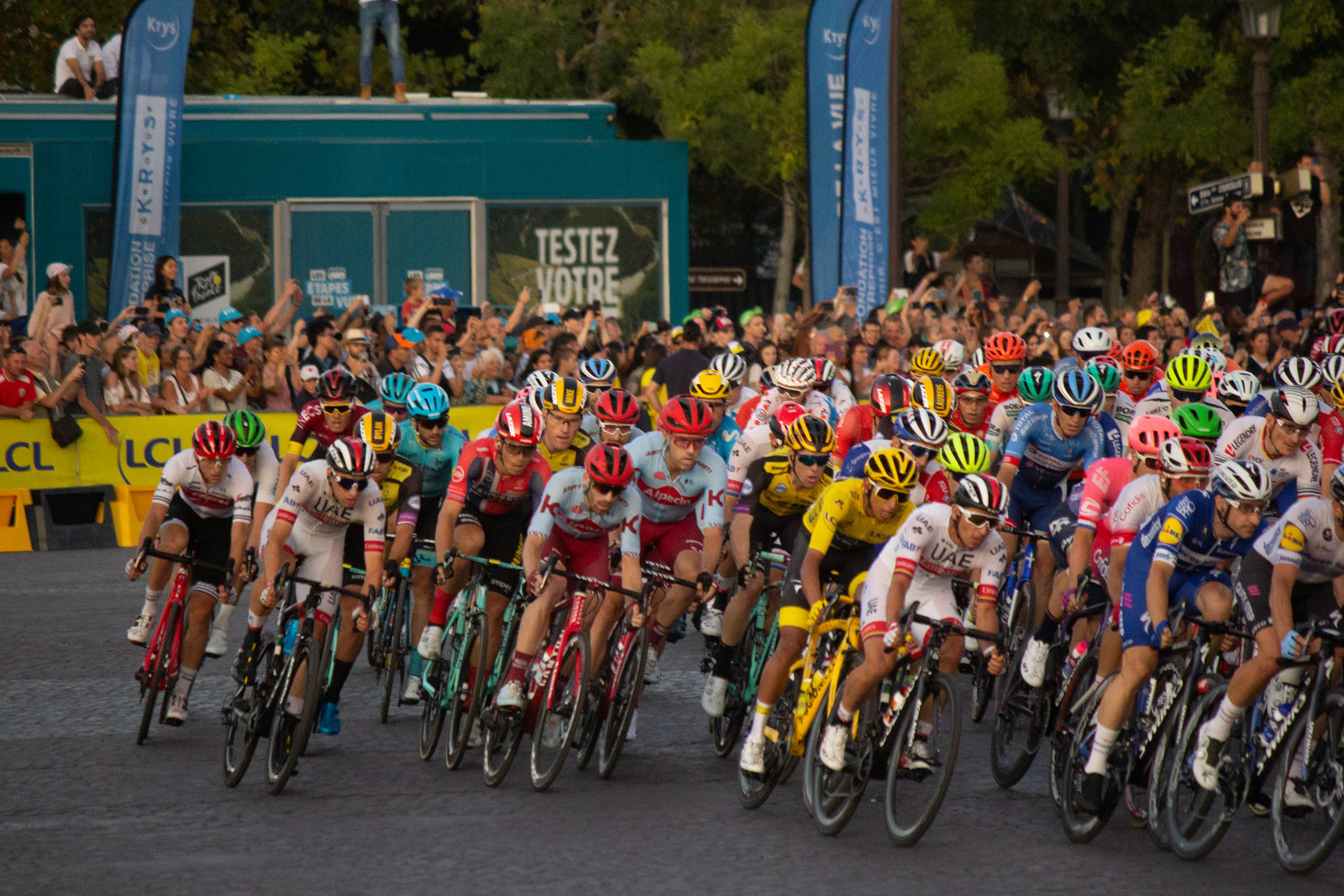 その年、エガン・ベルナルは、イエローの自転車でシャンゼリゼ通りの石畳を走った。上のアイキャッチ画像でも、イエローのジャージとバイクは良く目立っている。