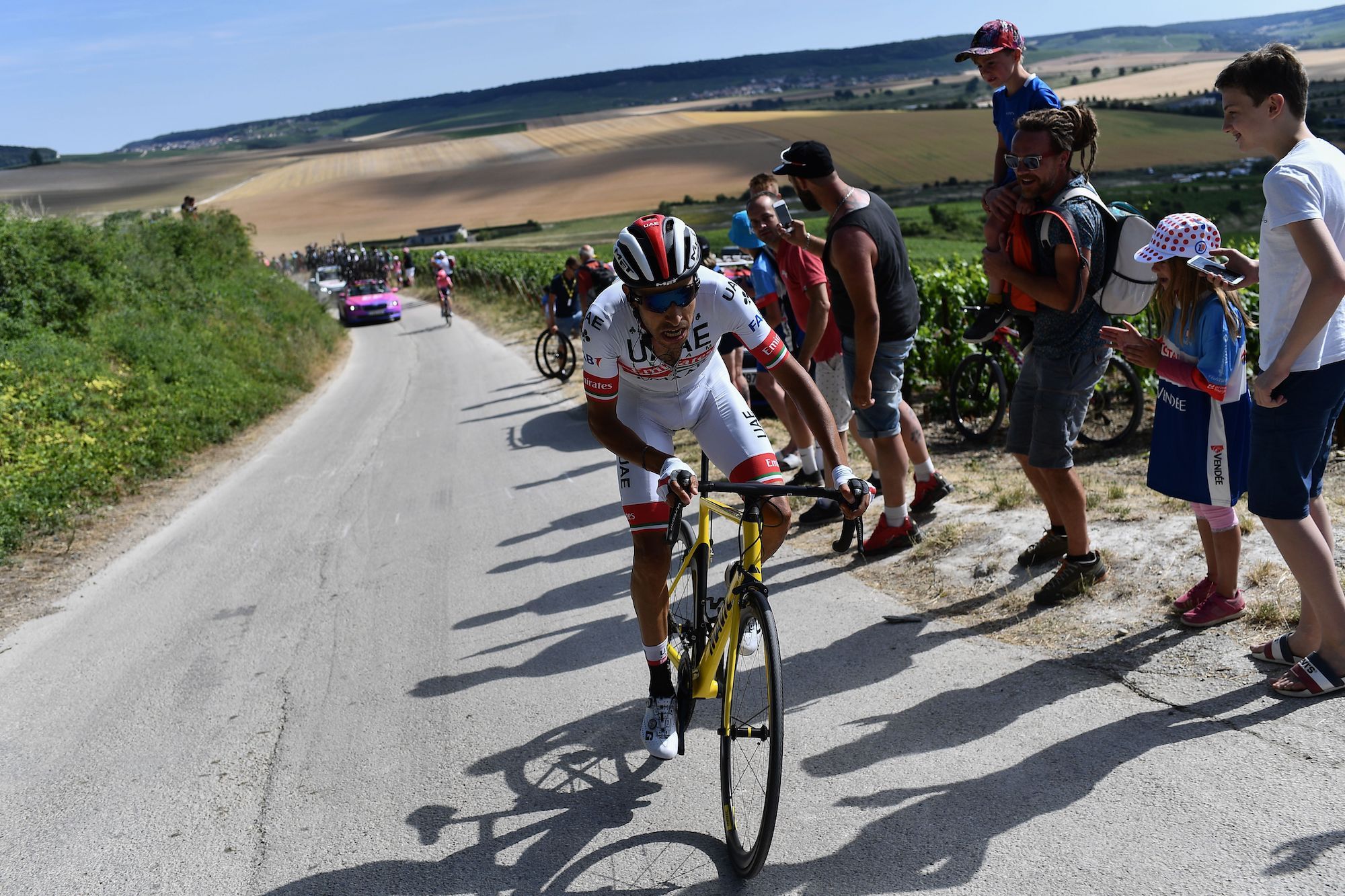 UAE-Team Emiratesはダン・マーティンとルイ・コスタがトップから1分28秒遅れで走っている。ファビオ・アルは2分19秒遅れ。