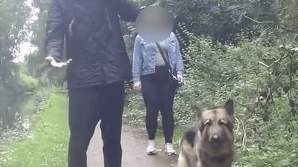 34歳の女性は、犬がリードをしていないと抗議しているのが聞こえるが、男性は『そうだが、お前はクソバイクに乗っている』と怒っている。
