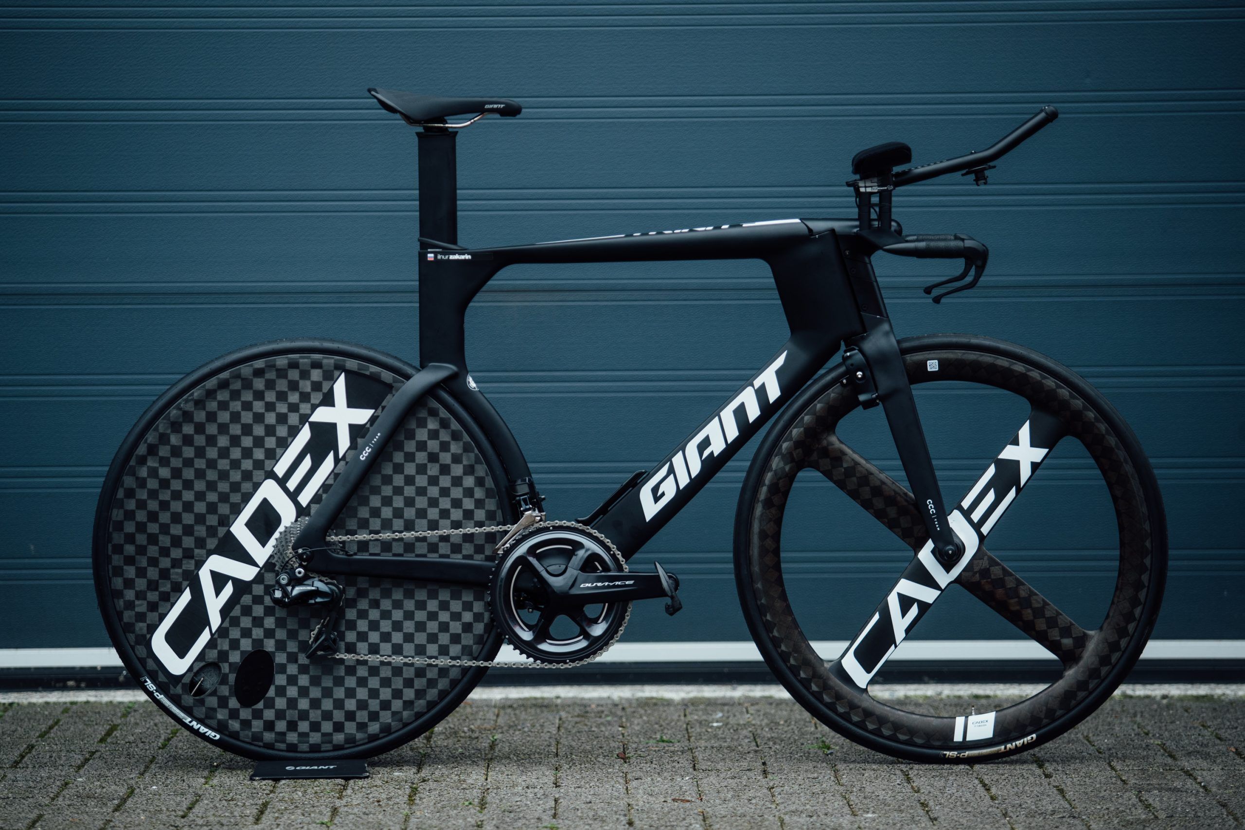 最新のCadex Aero TTチューブレスホイールを備えたGiantのステルスなTrinity Advanced Proは、独特なフレーム形状のTTバイク。