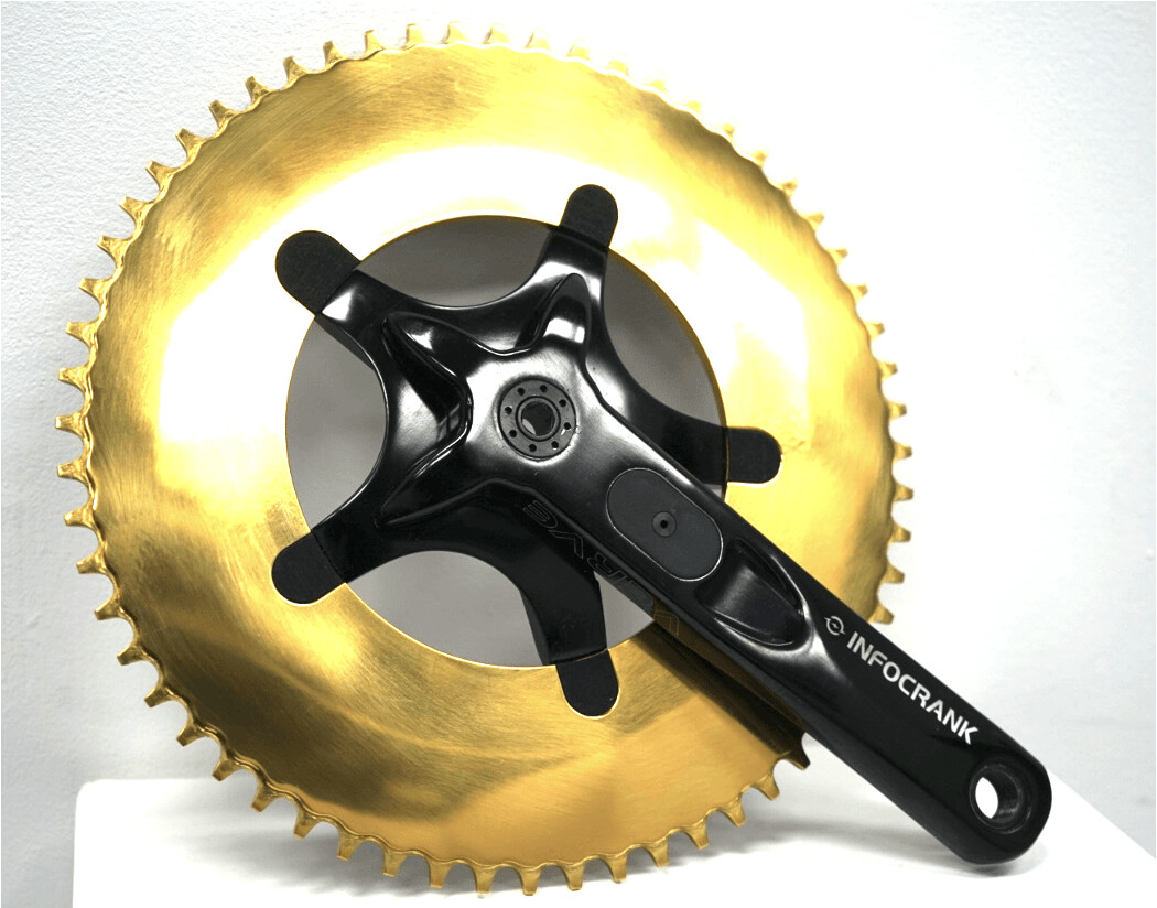このチェーリングを使うと東京オリンピックで使用される伊豆の250mベロドロームの標準的なエアロチェーンリングと比較して、50〜70km/hでラップあたり25cm速く走れると言う。