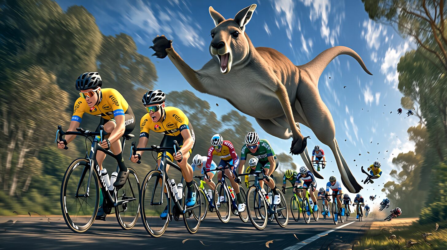 サントス・ツアー・ダウンアンダーでカンガルー乱入でジェイ・ヴァインも危機一髪 Vismaメンノ・ホイシングが被害