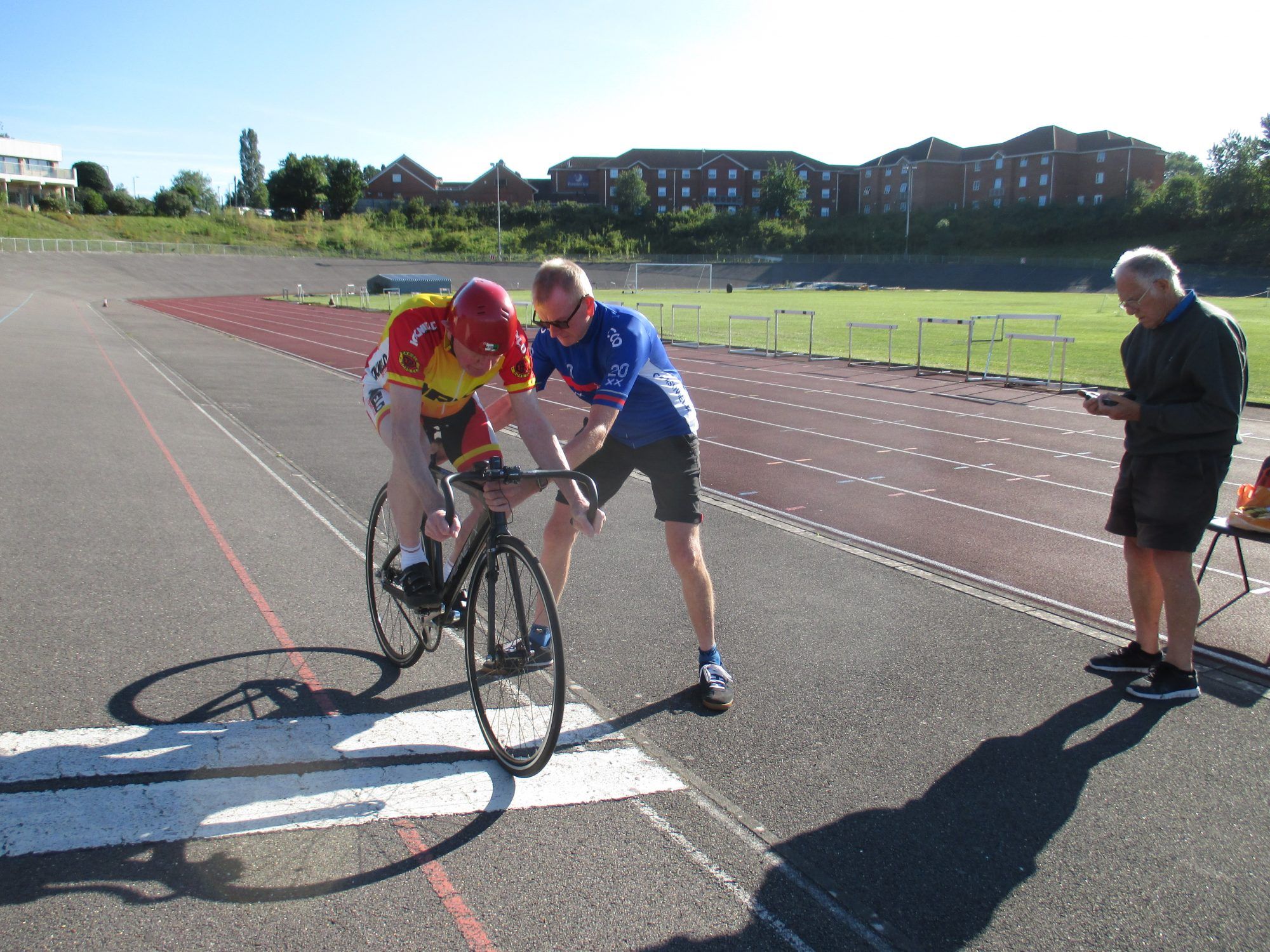 ウェルウィントラックの表面が崩れているため、ジョン・リーはトライバーではなくドロップハンドルバーに乗った。
