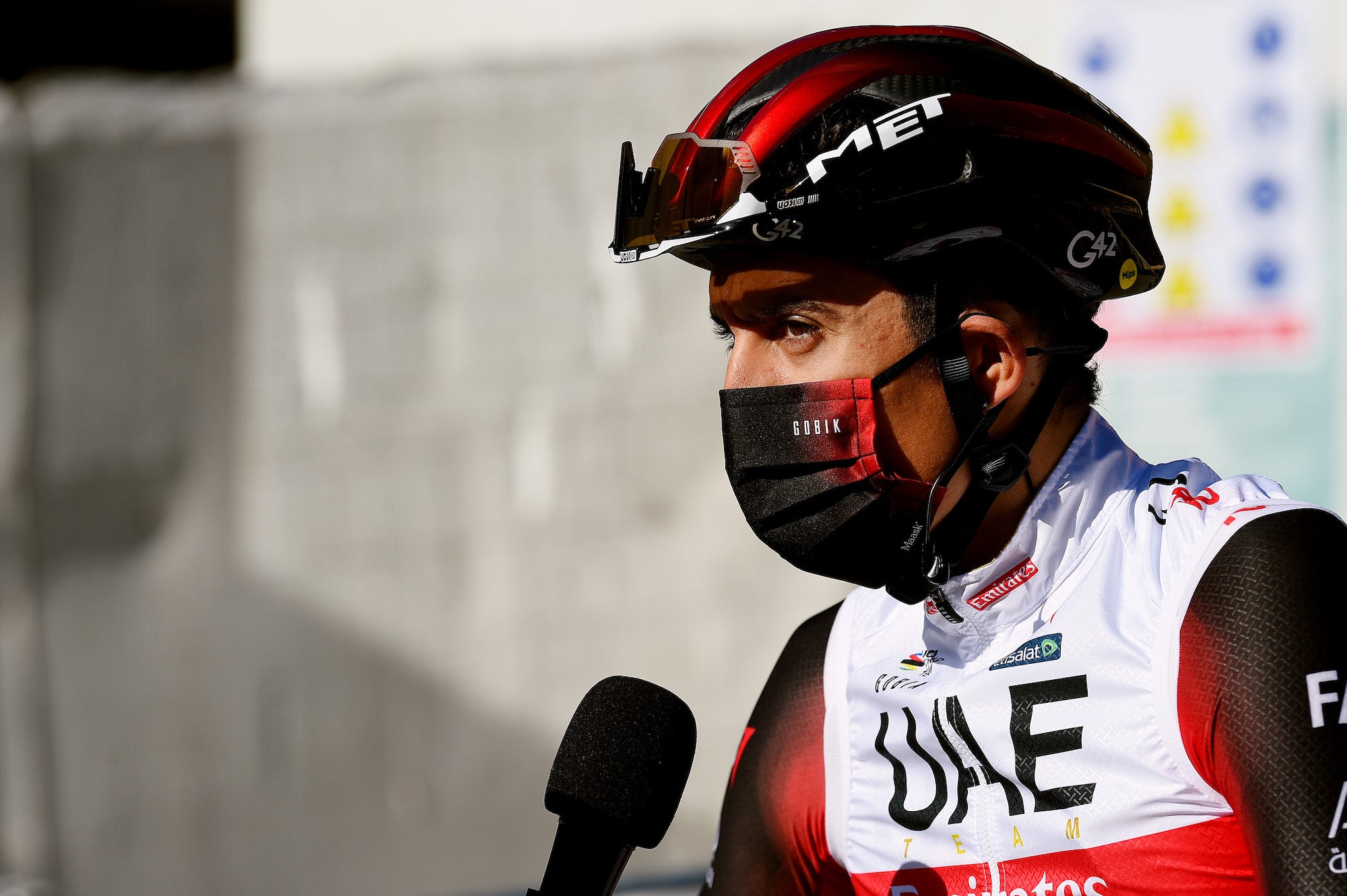 UAE Team Emiratesのフアン・モラノだ。レース中に、ポイント賞ジャージのIntermarché – Wanty – Gobert Matériauxのユーゴ・パージと口論。