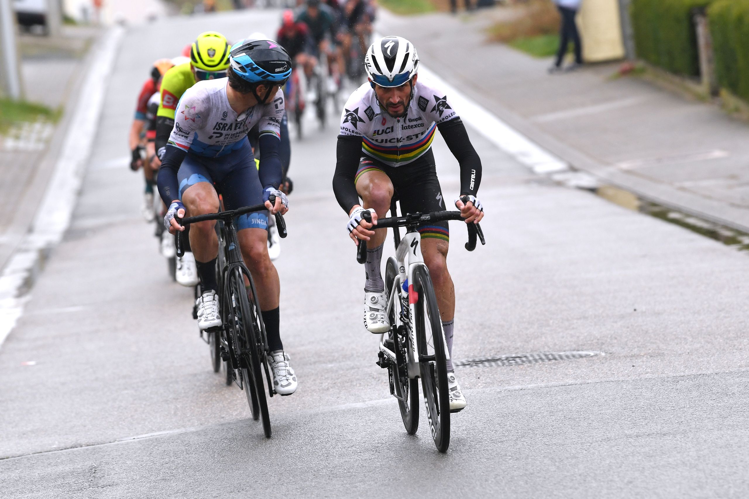 プラバンツ・パイルの残り21kmで、ジュリアン・アラフィリップは自分のチームのサポートカーによって落車してしまった。