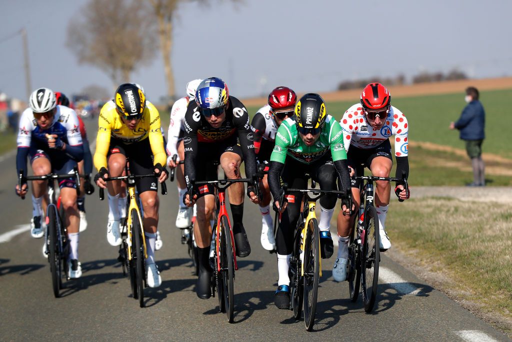 ⚡️ @JumboVismaRoad sets a high pace and splits the peloton! Collateral victims, the escapees are caught. #ParisNice pic.twitter.com/JR2DbLvyIT