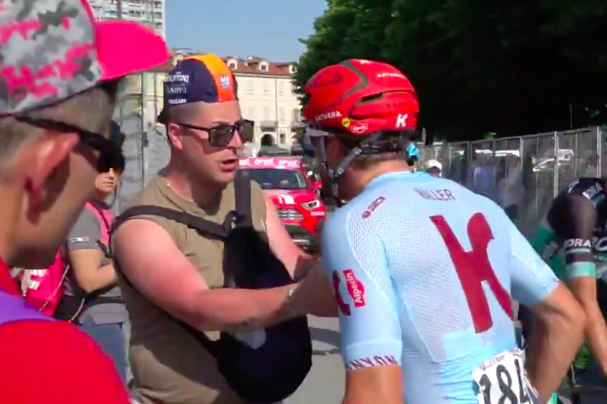 ジロ・デ・イタリア第12ステージのゴール後の出来事。