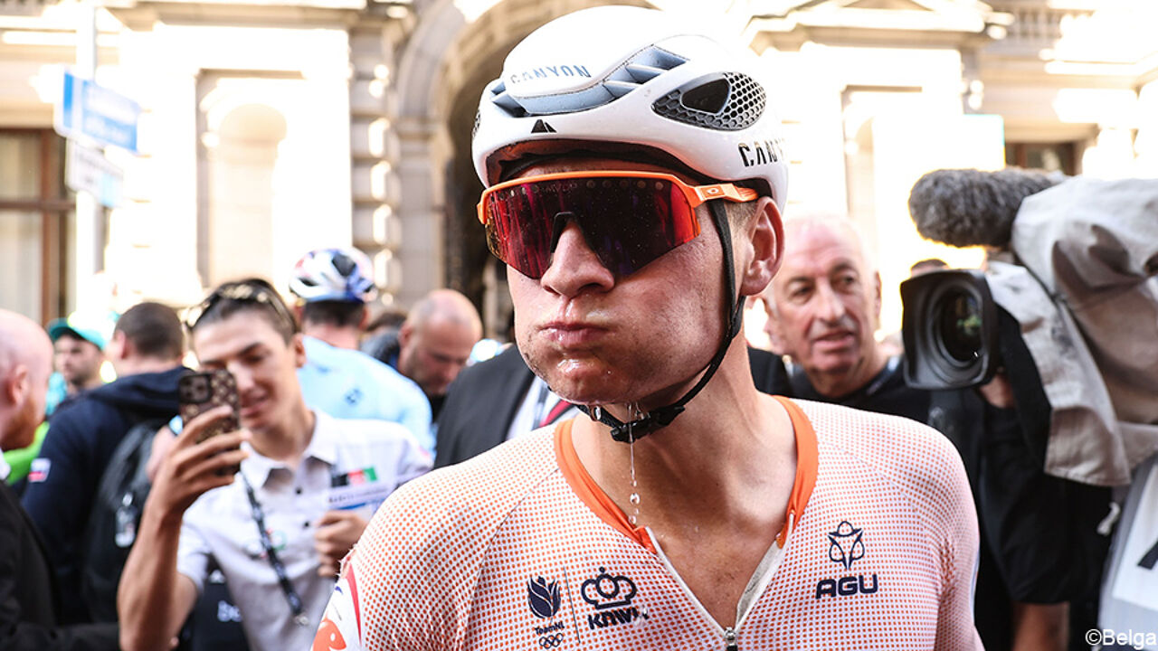 昔、トム・デュムランがたまらず道路脇に座り込んだ姿が思い出される。途中でこうなっていたら、マチューの勝利はなかっただろう。