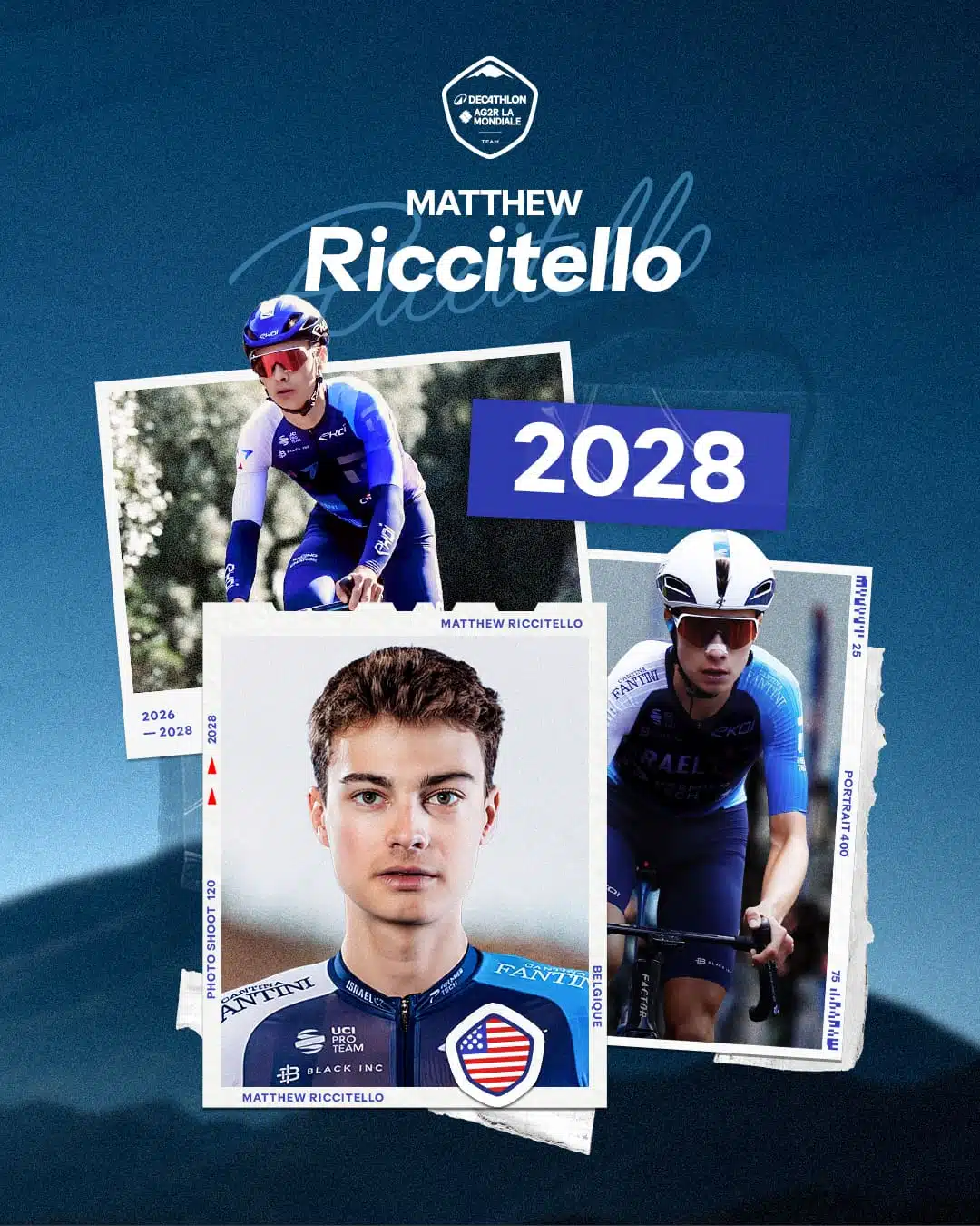 マシュー・リシテーロは、噂通りIsrael – Premier Techから、ブエルタ総合5位の実績を示して2026年からDecathlon CMA CGMに移籍する。
