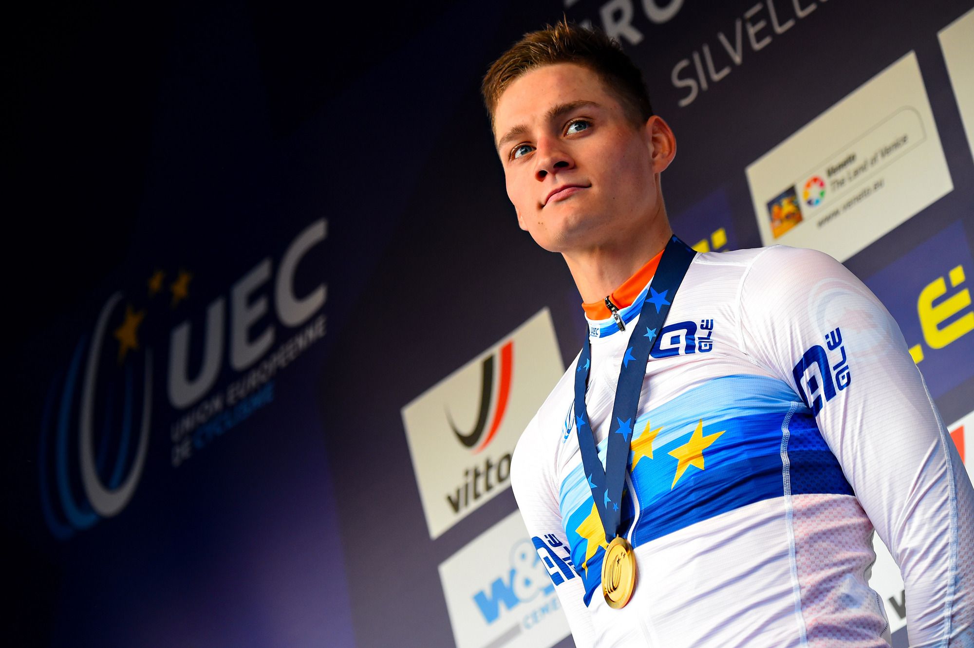 前日に、ヨーロッパシクロクロス選手権に優勝したマチュー・ファンデルプール。