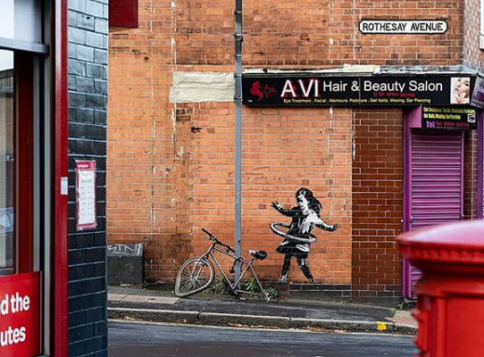 英国を拠点とする謎のアーティスト、バンクシーがノッティンガムの美容院の壁画に新たなアートを描いているのが確認された。
